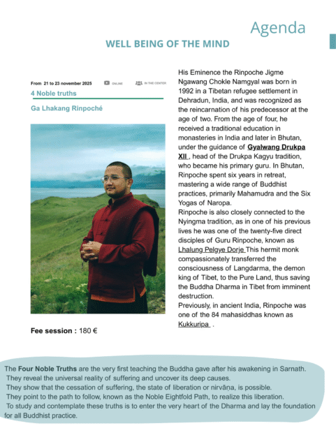 On the July 20 (Sunday), Ga Lhakhang Rinpoche will give teachings on the Four Thoughts that Turn the Mind to Dharma, and the construction, merging,… Read More »Visualization in Vajrayana and Four Basic Thoughts. Third session – July 20.