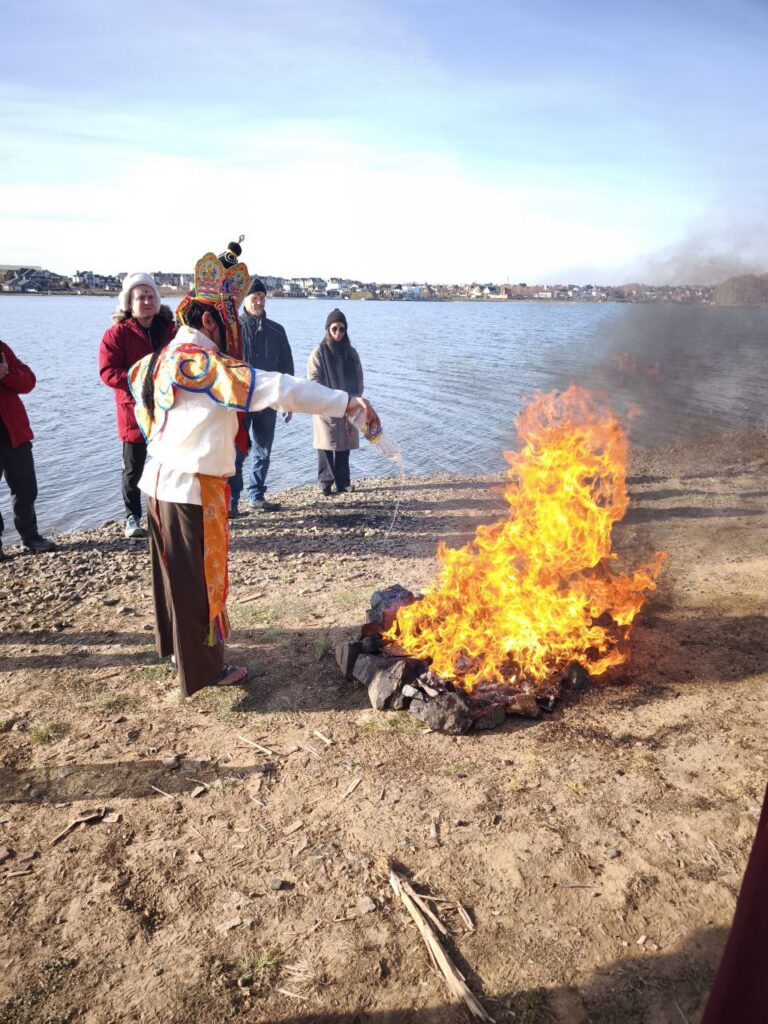 After spending several days near Moscow, Ga Lhakhang Rinpoche returned to Irkutsk and continued to grant teachings and perform rituals. A Ganapuja was held, along with an explanation of the Chöd practice, and a Chakrasamvara Fire Ritual was performed on Angara river to overcome negative influences.
