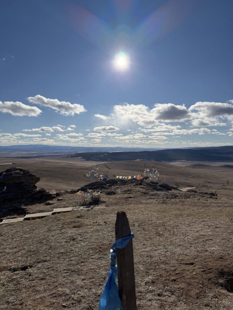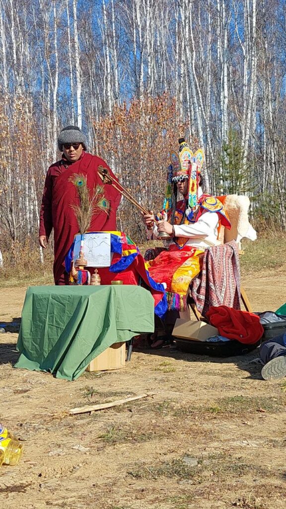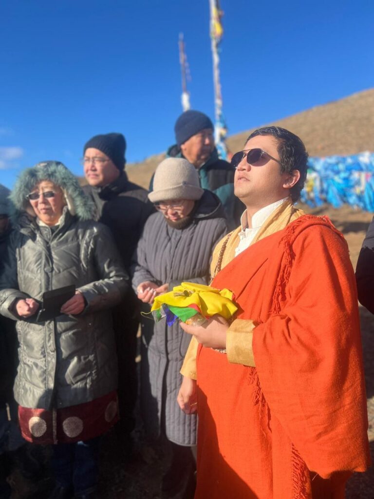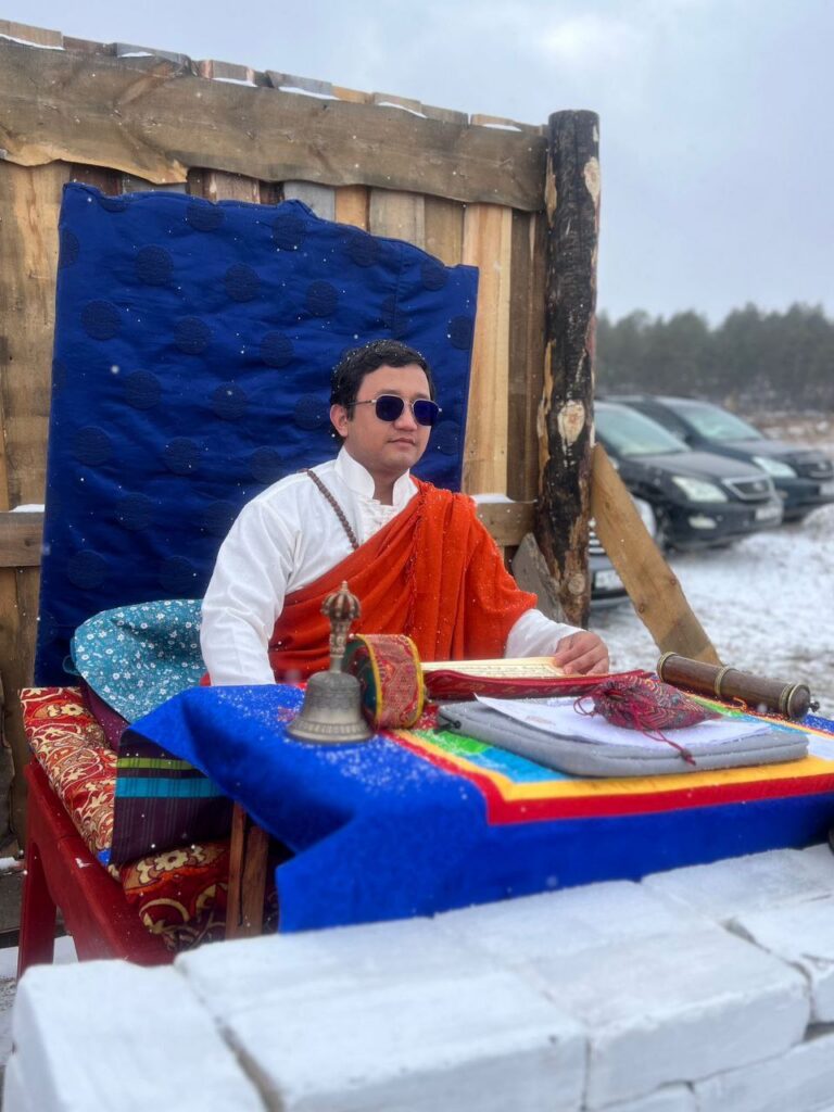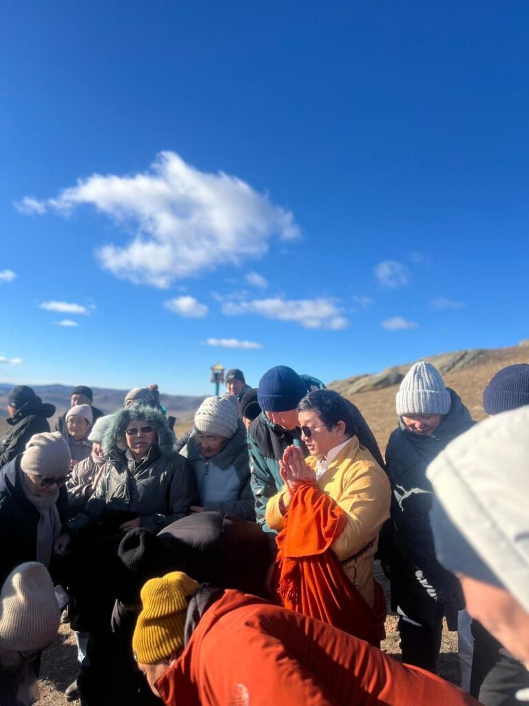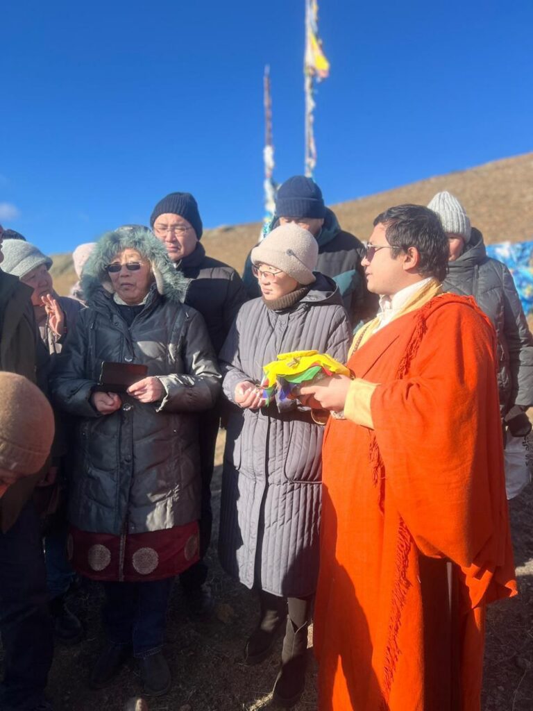 On October 26, in the Kizhinginsky district of Buryatia, the Teacher performed the Riwo Sangchö offering ritual on Chelsana mountain, where a spot was consecrated for the statue of Guru Rinpoche Sampa Lhundrup – Spontaneously Fulfilling All Wishes. The local residents warmly welcomed the Teacher, introducing him to the secondary school and lyceum. The XIII Ga Lhakhang Rinpoche presented Gennady Lkhasaranov, the head of the Kizhinginsky district of Buryatia, with sacred ringsels from the Shakyamuni Buddha’s tooth, taken from the 10th Ga Lhakhang’s gau amulet. These will be enshrined in the Guru Rinpoche statue. Nature responded, manifesting in miraculous signs in the sky, and people’s hearts were filled with kindness and joy!