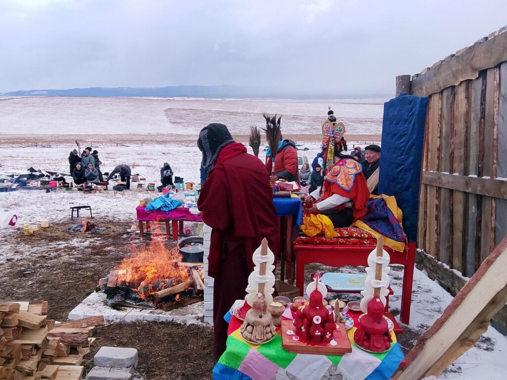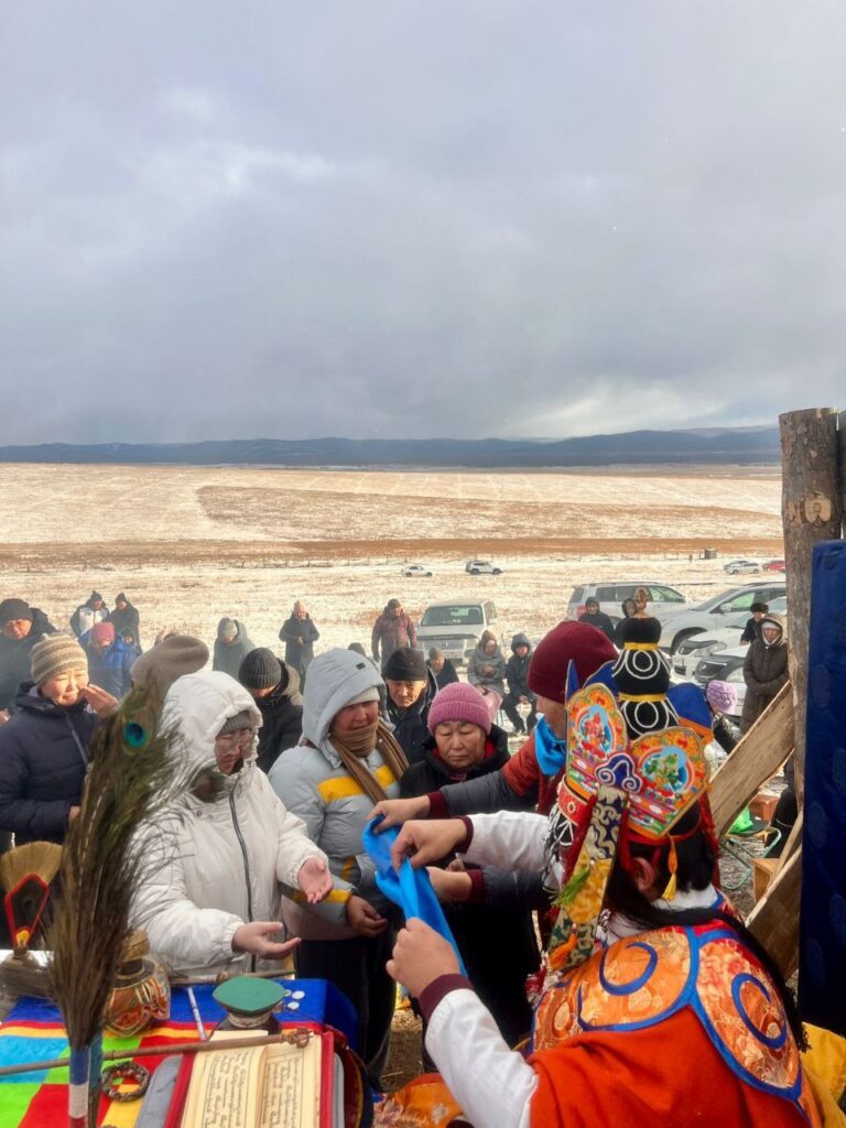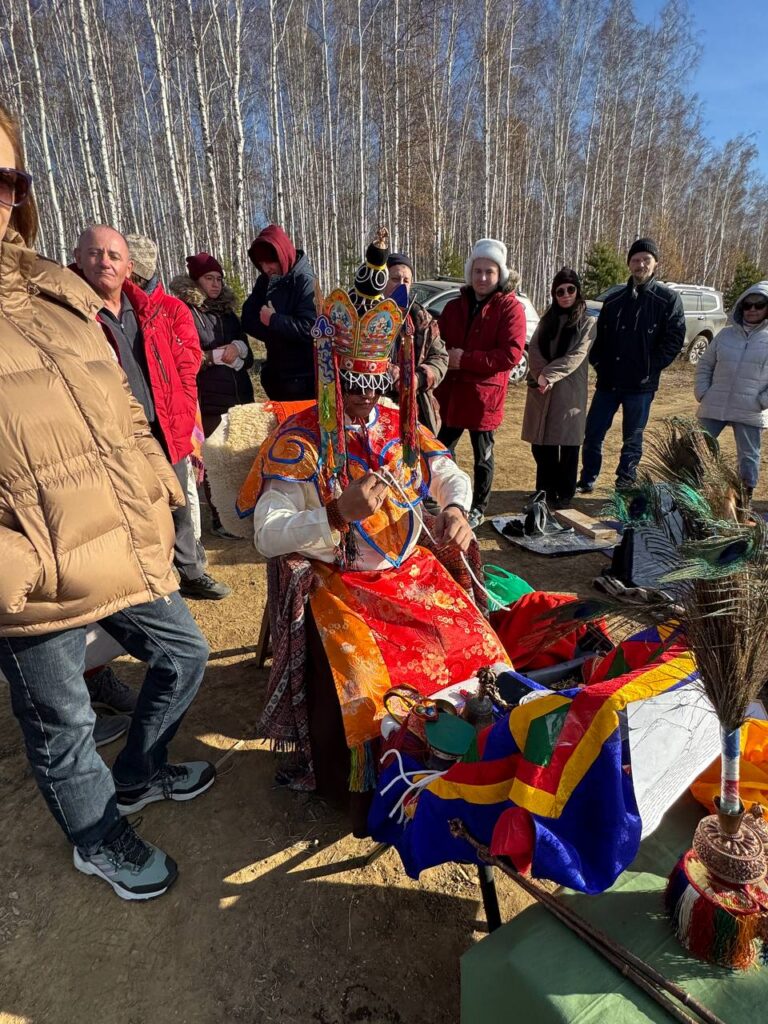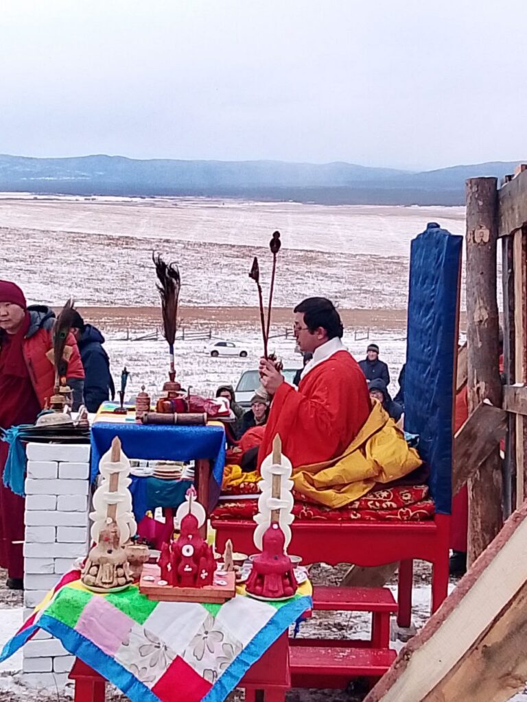 Next, Ga Lhakhang Rinpoche travelled to Buryatia, to the village of Mogsohon, where he granted various teachings and performed the Riwo Sangchö ritual and a Vajrakilaya Fire Puja. The weather was astonishing: gloomy dark clouds parted over the mountain slope and the bright sun appeared, illuminating the blue sky! In the evening, the local residents offered the Teacher a small concert performance at the Culture House and took a commemorative photograph.